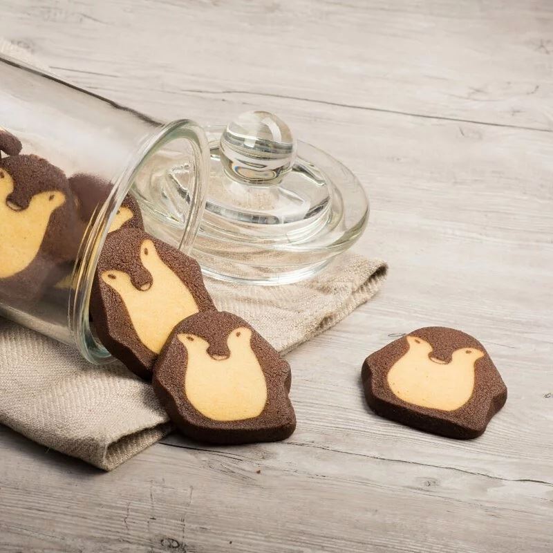 嚴選進口可可粉與奶油,將其融為一體拌入麵粉中,由老師傅手工桿製、雕琢的可愛企鵝造型,是大人、小朋友都喜愛的幸福滋味。