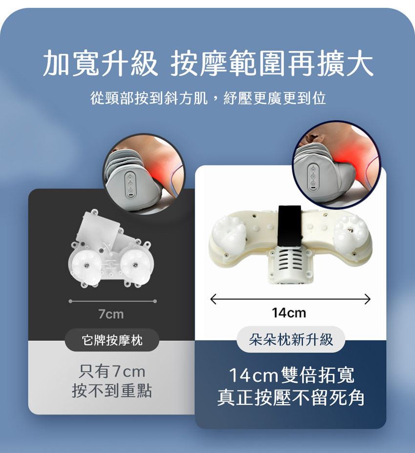 ◆ 14 cm 加寬按摩頭,從頸部按到斜方肌