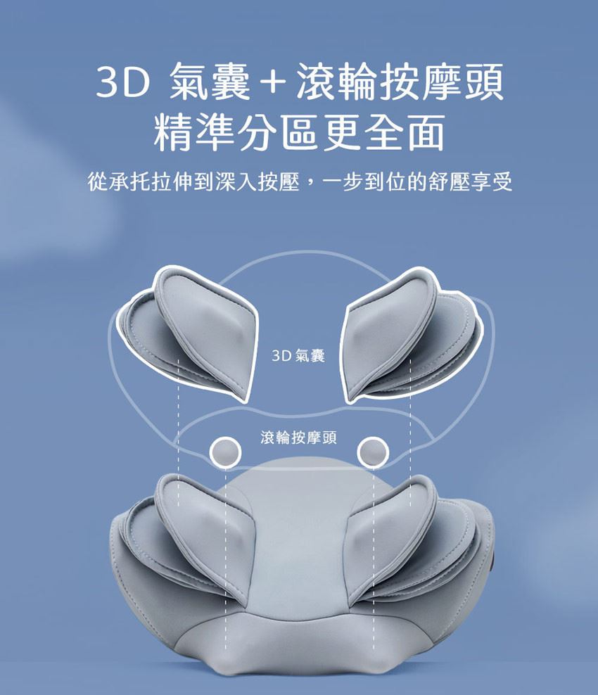 ◆ 6片 3D 分層氣囊,左右拉伸頸脖舒緩