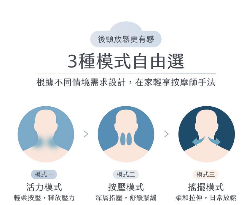 ◆ 三種模式自由選,後頸放鬆更有感