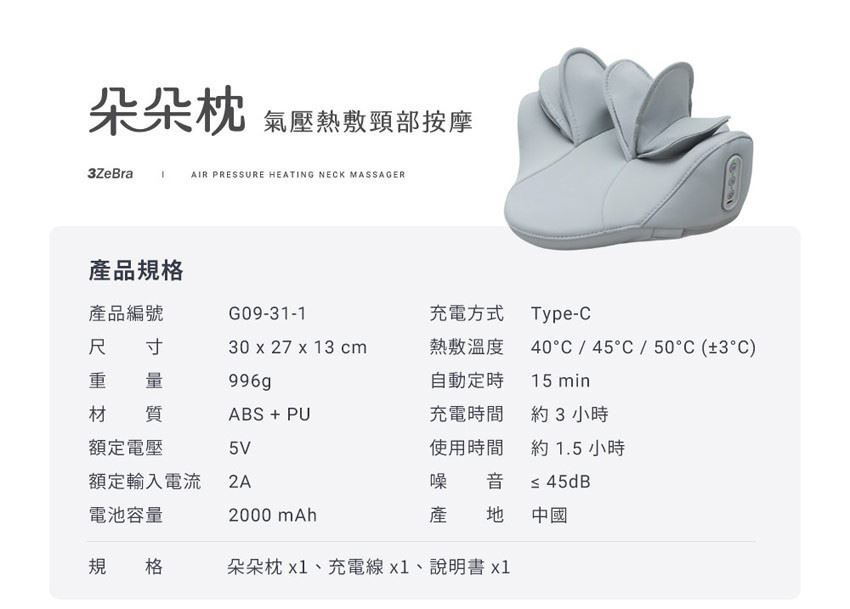 『3ZeBra』朵朵枕 氣壓熱敷頸部按摩器