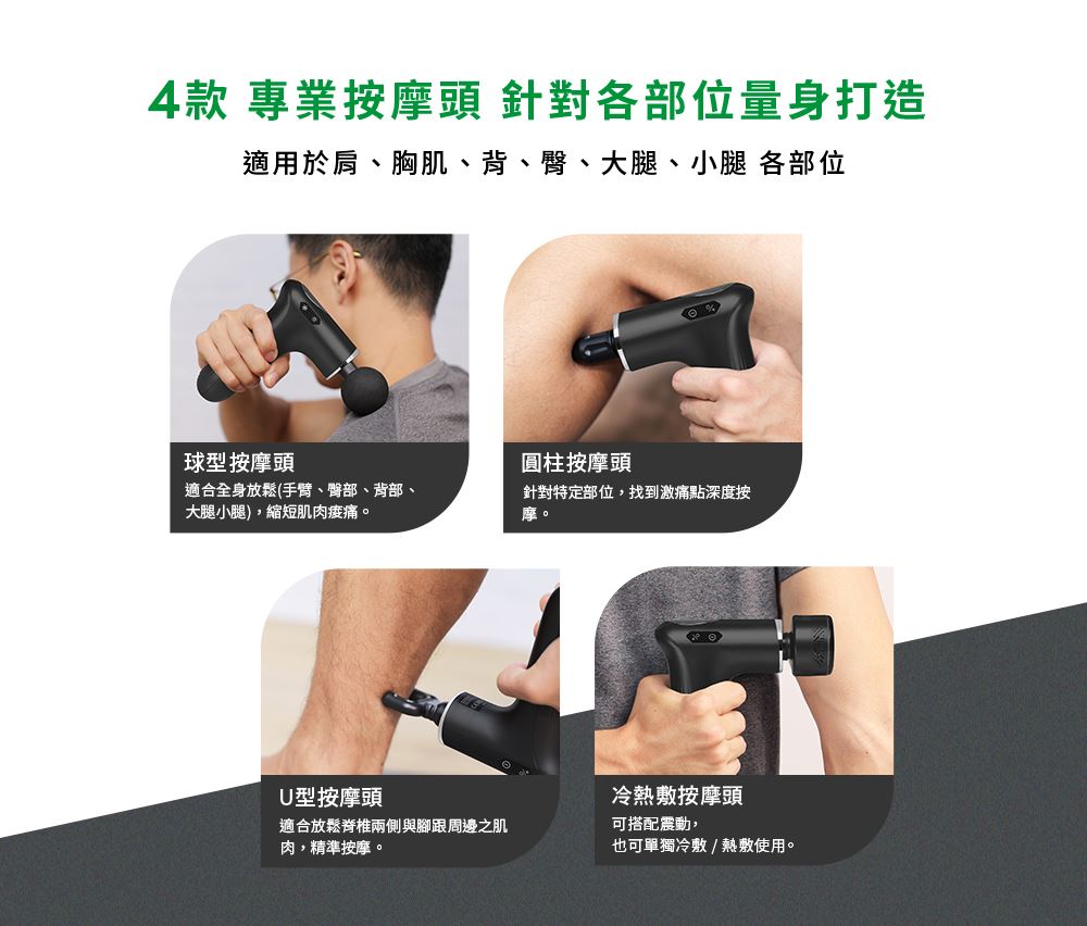 按摩頭:冷/熱敷按摩頭*1+球型按摩頭*1+圓柱按摩頭*1+U型按摩頭*1